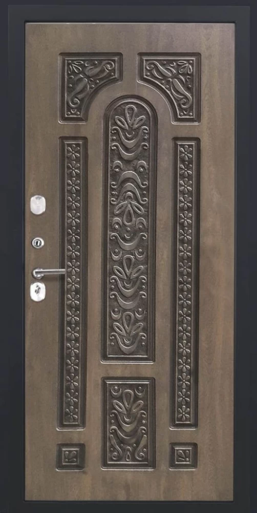 Дизайнерская входная Входная дверь ДвериПРО L-43 Д-19 (16мм, Грецкий орех + черная патина винорит) DPRO194046 класса Люкс с несколькими листами стали, звукоизоляцией и теплоизоляцией. Утепленный короб и полотно защитят от сквозняков и шумов. Модель не только надежная, комфортная, защищенная и высочайшего качества, но и очень красивая! Будет отлично сочетаться с интерьером дома, квартиры или офиса. Сейчас действует выгодное предложение по цене: 74 323 руб.
